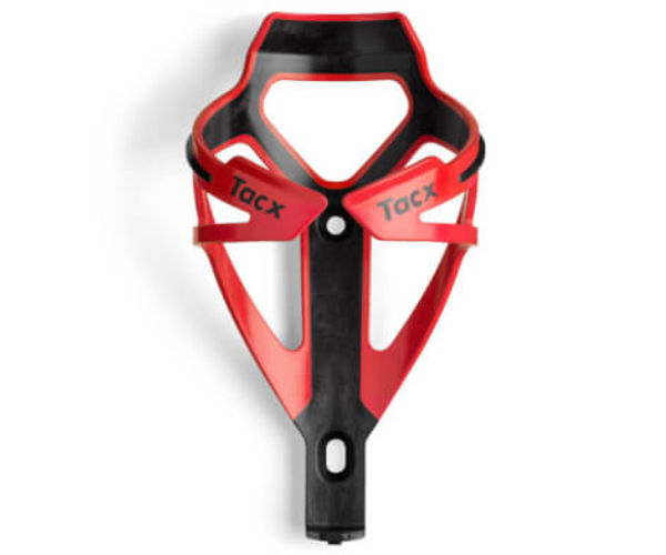 Tacx bidonhouder Deva rood, 29 gram en gemaakt van polyamide versterkt met 40% carbon(stevigheid) en 30% glasfiber(vering)